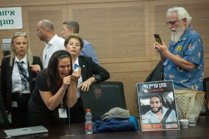 יו"ר הועדה לזכויות הילד, ח"כ אליהו רביבו, לבני משפחות החטופים שהגיעו לדיון בכנסת.