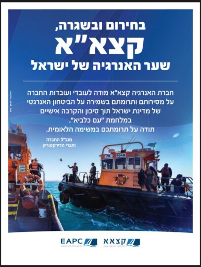 "בחירום ובשגרה, קצא"א – שער האנרגיה של ישראל" – כך קובעת מודעת הענק שמופיע הבוקר (ראשון) על עמוד שלם בעיתון ידיעות אחרונות. הפרסומת שחתומה בידי הדמויות העלומות שמזדהות רק כ"מנכ"ל החברה וחברי הדריקטוריון" מבקשת להודות לעובדים על "מסירותם בשמירה על הביטחון האנרגטי של ישראל תוך סיכון והקרבה במלחמת 'עם כלביא'". הפנייה של המנכ"ל עמית שקד ושל חברי ההנהלה הבכירים יכולה הייתה להסתכם במכתב ישיר לעובדי החברה, אלמלא קצא"א הייתה בעיצומו של קמפיין מתמשך להרחבת פעילותה ולהארכת החיסיון על פועלה של החברה הרחק מעייני הציבור.