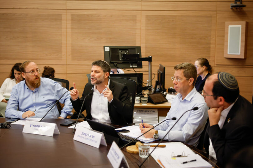 חשיבותו הפוליטית של הנושא הודגשה על ידי הגעתו של שר האוצר בצלאל סמוטריץ', שאמר כי הוא וחבריו חותמים בשתי ידיים על הצעת החוק. "התערבות זרה לא מתקבלת על הדעת. צריך להדוף באבחה חדה את המעורבות הלא לגיטימית וחצופה בענייניה של מדינת ישראל. נאבקים ביהודה ושומרון, נאבקים במדיניות כלכלית ואין לזה תקדים. אף מדינה לא הייתה מאפשרת למדינה אחרת להתערב בענייניה הפנימיים", טען סמוטריץ' כשלידו יושב פעיל הימין ברל'ה קרומבי.