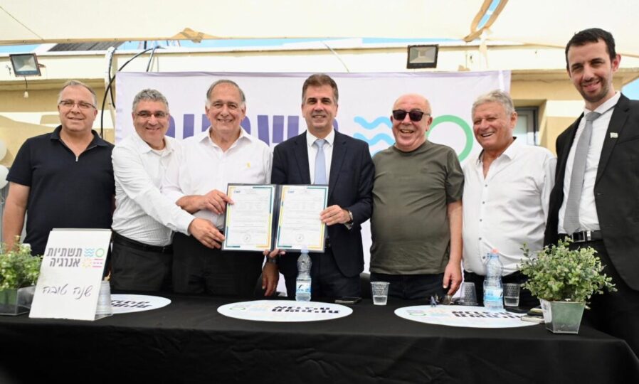 ואלה שמות העומדים לצדו: ח"כ אריאל קלנר, יו"ר תש"ן (היום תש"א) חיים אביטן, ראש עיריית קריית ים דוד אבן צור, שר האנרגיה אלי כהן, מנכל תש"ן (היום תש"א) עוזי לוין, וראש עיריית קריית ביאליק אלי דוקורסקי.